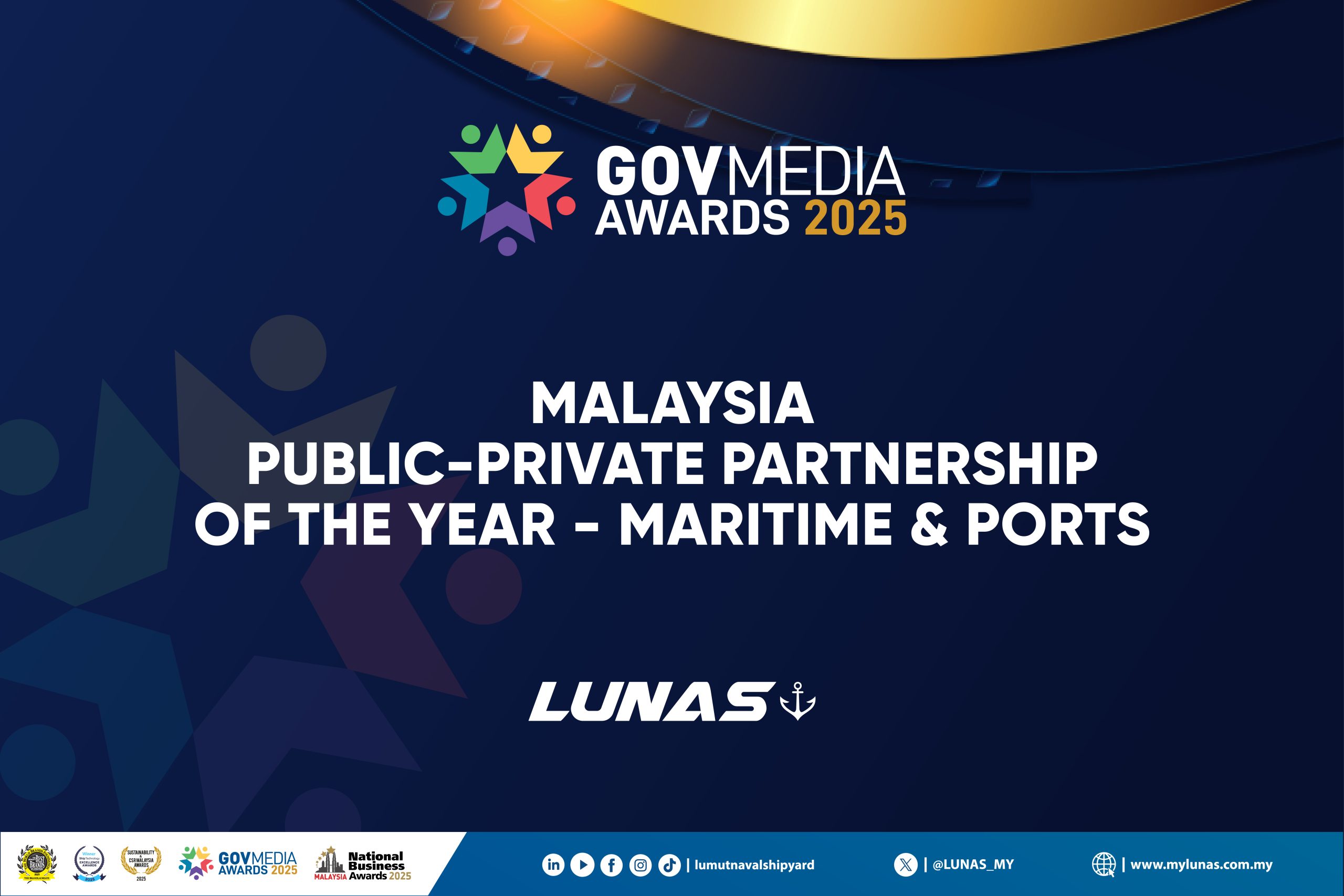 Lumut Naval Shipyard (LUNAS) has been honoured with the Malaysia Public-Private Partnership of the Year – Maritime & Ports at the GovMedia Awards 2025 for its exceptional work in the construction of five Littoral Combat Ships for the Royal Malaysian Navy. This achievement highlights our strong partnership with government stakeholders, commitment to Defining Excellence and contribution to Malaysia’s maritime defence capability.