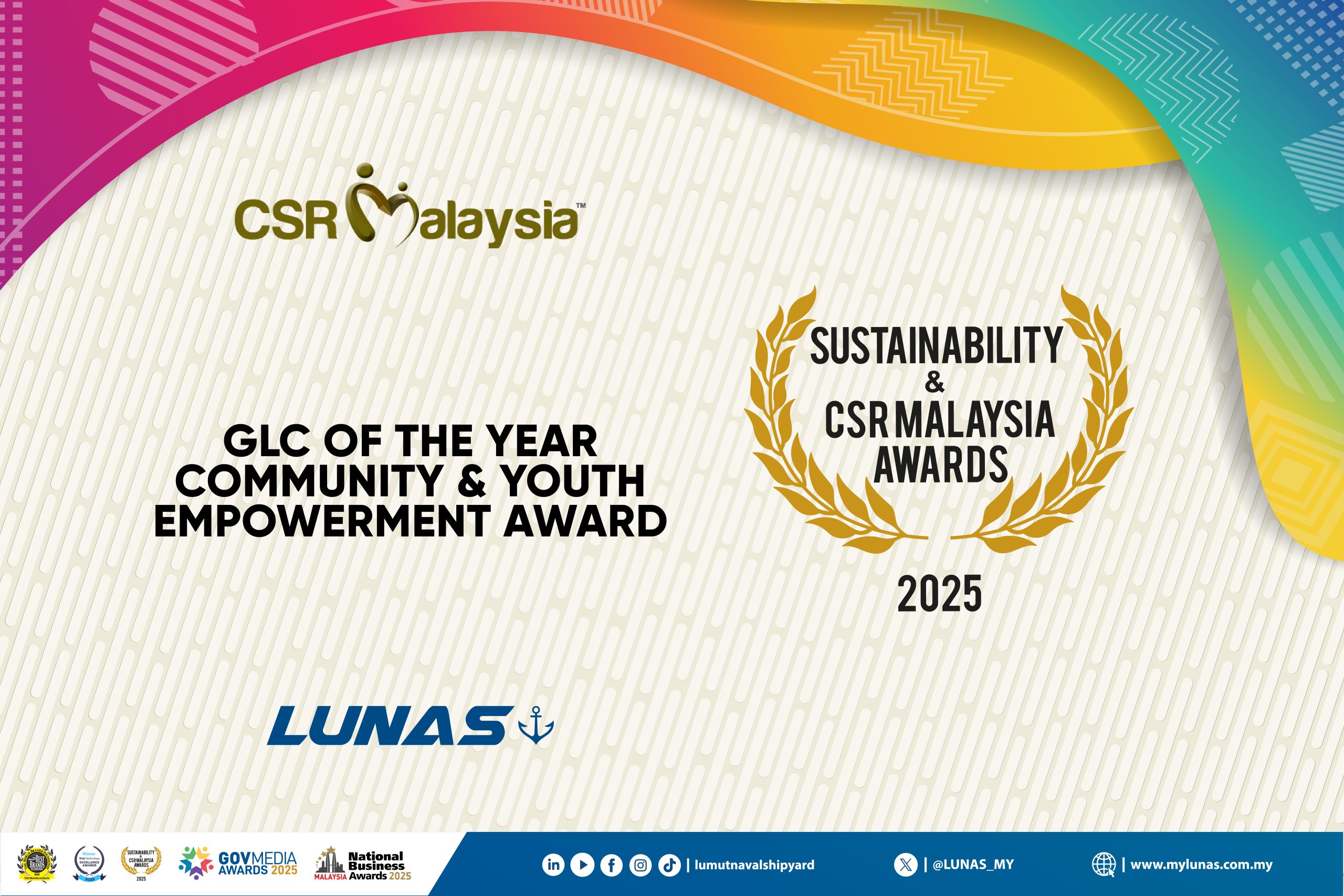 Lumut Naval Shipyard (LUNAS) is proud to be named GLC of the Year for Community & Youth Empowerment at the Sustainability & CSR Malaysia Awards 2025. This accolade highlights our impactful initiatives that uplift communities and support youth development — reinforcing our belief in people as a key driver of nation building.